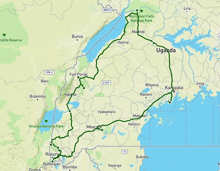 This 19-Day action-packed Uganda primates and birding safari takes you to Mabamba – a Ramsar site in search for the mythical shoebill. From here continue to Zziwa Rhino Sanctuary, on-wards to Budongo Forest where you bird the ‘Royal Mile’ with an overnight at Uganda’s first hotel. You then bird to Murchison Falls National Park where you also go on a boat safari to the bottom of the powerful falls, bird towards the Albert delta. From here, you head to Kibale Forest National Park, considered the primate capital of the world, Queen Elizabeth National Park – one of Uganda’s major savannah game park, where you could find the tree-climbing lions of Ishasha. From Queen Elizabeth National Park, you will continue onto the home of the gentle giants (Mountain Gorillas) – Bwindi Impenetrable National Park. After your date with the gentle giants, you will head to Lake Mburo National Park. You bird Lake Mburo on boat and land and can conclude with a bush walk before heading to Entebbe to end what we believe will have been a wonderful safari with memories galore.