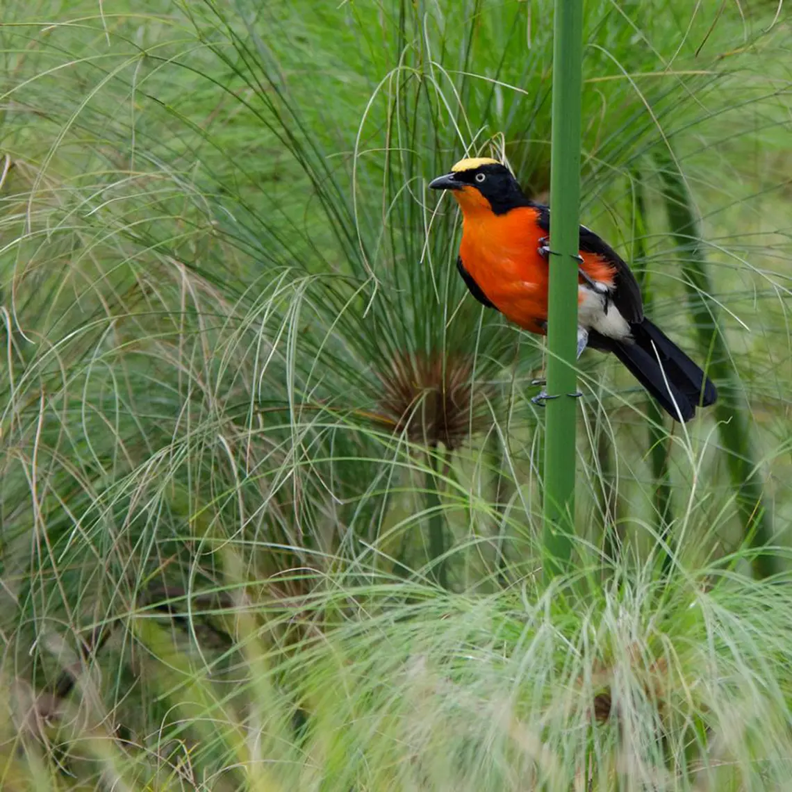 You are up early and have breakfast. After your breakfast, with packed lunch in your carry-on bag, head to Mabamba Bay. The word ‘Mabamba’ is a Luganda word translated as “a place of Lung Fish” in the local dialect. Declared a Ramsar Site in 2007, Mabamba Bay is a birding hotspot that stretches into Lake Victoria. It is one of the best places to see the rare Shoebill Stork! Among the 300 bird species recorded in Mabamba are the Blue Swallow, White-winged Tern, Gull-billed Tern in the migratory category. Papyrus endemics include Papyrus Gonolek, Papyrus Yellow Warbler among others. The Marshy Swamp is also a haven to spur-winged geese, yellow-billed ducks, and malachite kingfishers, African Jacana, Purple Heron and Squacco Heron, Weyn’s Weaver, Lesser Moorhen among others. On this visit, you employ a motorized canoe and navigate the narrow waterways in the swamp in search for the prolific birdlife that the marshes have become very famous for. When you return to Entebbe, head to the Entebbe Botanical Gardens expecting to see Great Blue turaco, Ross’s Turaco, Great Reed Warbler, Fain Tailed Widow bird, Woodland and Pygmy Kingfishers, Black Bishop, Grey Woodpecker, Olive, Olive bellied and Red chested Copper, Sunbirds and many more. Later, drive back to the guest house where you relax. From Mabamba go birding in the Entebbe Botanical Gardens. Look out for the Orange Weavers that build intricate nests, Vieillot’s Black Weaver, Red-chested sunbirds, the rare Verreeaux’s Eagle-Owl, Black-headed Herons and a lot more. Later, head back to the guest house/ hotel for dinner and overnight stay.